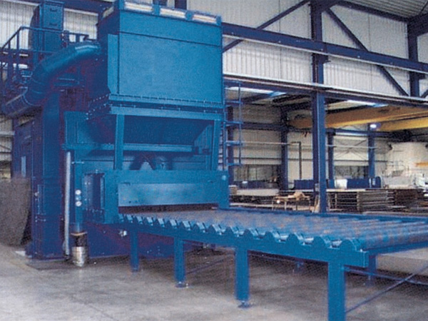 常規鋼板預處理拋丸清理機包含:鋼板拋丸機處理線、噴漆烘干設備等幾部分組成,采用輥道輸送,根據鋼板寬幅定制拋丸器排布,其中我公司在拋丸設備的開發過程中總結了國內國家設備用戶使用情況,針對鋼丸的回收部分,特別加裝刮板及滾掃,鋼丸回收率高,損耗低。 此類非標設備的開發對企業的研發能力要求較高,同時也非常考驗企業的生產能力,由于大部分工作需在客戶現場完成組裝,因此前期的生產精度要求非常高,若偏差大,客戶現場組裝過程非常麻煩,因此工廠對此類設備的生產經驗尤為重要。前期跟客戶溝通場地安裝等問題,并根據客戶要求出具地基圖紙,后續生產中,板材的裁切、焊接、零部件的拼裝應在經驗豐富的生產工人手中實現。確保客戶現場的0誤差。 鋼板預處理拋丸清理設備是大型船廠、鋼結構廠家的必備設備,設備自動化程度高,生產量大。